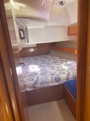 SummaryAn excellent, well equipped family yacht ready to go sailingCONSTRUCTIONBavaria 46 Cruiser built by Bavaria Yachts GmbH in 2007 German flag GRP hull, deck and superstructure Teak cockpit sole and benches Fin keel Twin Wheel steeringMECHANICALSOne Volvo D2-55, 55 hp, 4 cylinder fresh water cooled diesel engine 6 knots cruising speed 8 knots maximum speed Sail Drive Craftsman Bow Thruster - 2022 ELECTRICS: 12 V DC + 240 V AC 1 x 60Ah Engine start battery - 2025 3 x 200Ah LiFePO4 Service batteries – 20252 x 200Ah bowthruster batteries - 2025 Victron 40 Amp Battery charger -2025 Inverter 3 kw 4 x 180 W Solar panels and Victron MPPT controller - 2025 Shore power connection and cable TANKAGE: 1 x 210L fuel tank 2 x 230L water tanks 2 x 100L Holding tanks WATER SYSTEM: Pressurised water system Water heating off engine and shorepowerRIGSloop Aluminium Spars by Selden In mast mainsail reefing Furlex 300S Genoa Furling Adjustable BackstayRod kickerSpinnaker pole SAILS: Mainsail - Elvstrom - 2016 Genoa - Elvstrom – 2016 WINCHES: 2 x Lewmar two speed self tailing Genoa winches 2 x Lewmar two speed self tailing Halyard winches All lines led back to the cockpitACCOMMODATIONEight berths in four cabins including two aft cabins and one bunk cabin forward, one double forward Gas hob with two burners Electric oven Microwave Fridge freezerDishwasher Double s/s galley sink Two heads, handbasins and showers and Electric toilets White/Blue interior upholstery INVENTORYNAVIGATION AIDS In Cockpit: 2 x Suunto steering Compasses Raymarine ST60 Tridata repeater in cockpit Raymarine wind instrument Raymarine ST6002 Autopilot At Chart table: RAY 54E VHF Raymarine C70 Plotter GROUND TACKLE: 25kg Kobra II main anchor with 110m of 10mm chain Spare anchor Quick Electric windlass with cockpit remote GENERAL EQUIPMENT: Boarding ladder Aluminium Passarelle 1.8mDeck shower - hot and coldBimini Sprayhood – new 2023 One Electric and One Manual Bilge pumps 4 x Fire extinguishers Fire blanket Liferaft 6 x LifejacketsMOB life ringGas detector Various Warps 6 x FendersBoathookDingy Clock/ Barometer Radio/CD player with speakers in salon and cockpit Samsung Smart TV 40’ Cutlery/crockery/ kitchen utensils