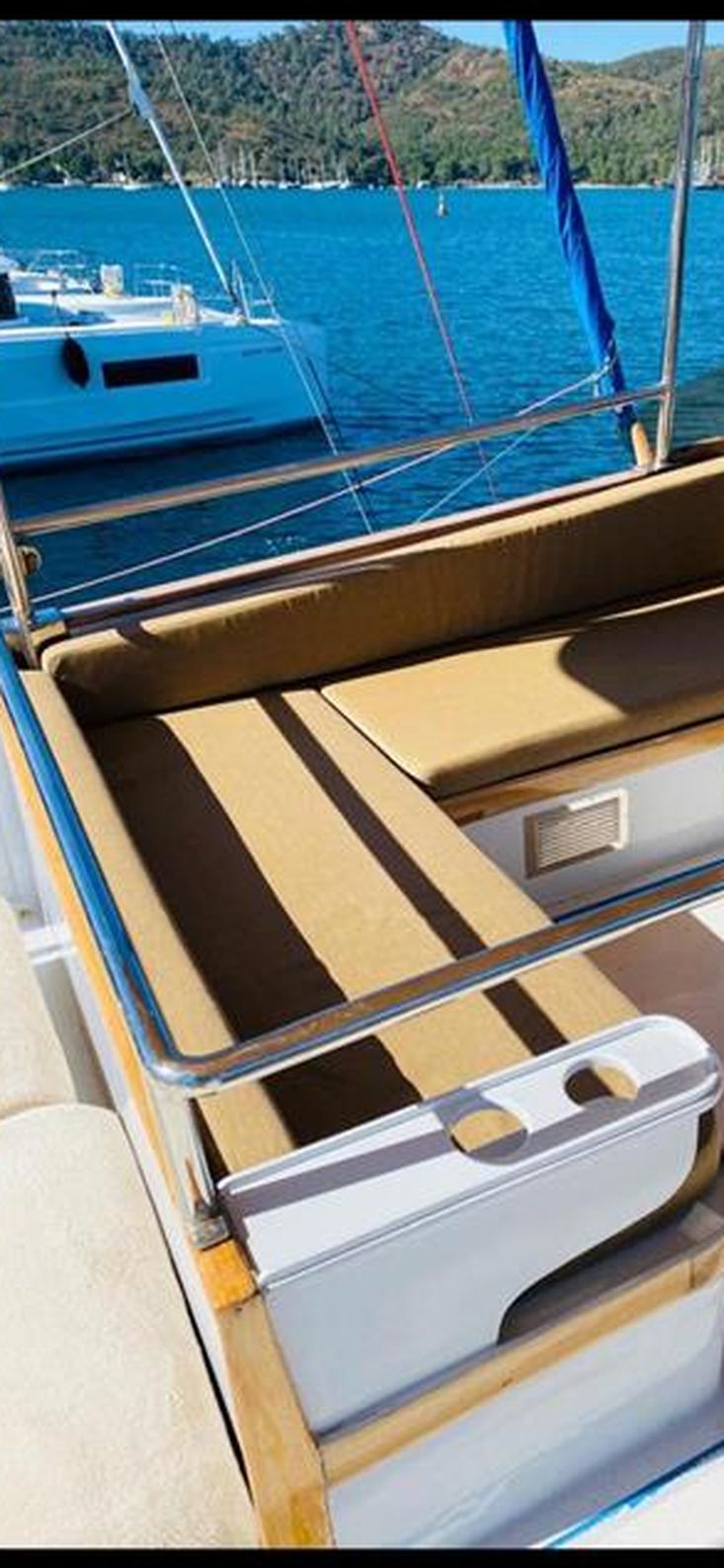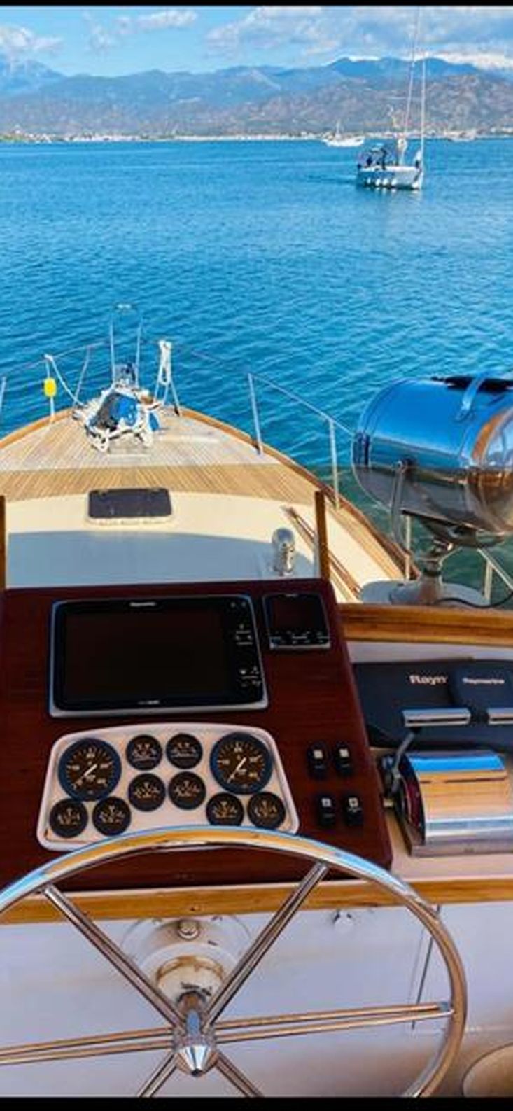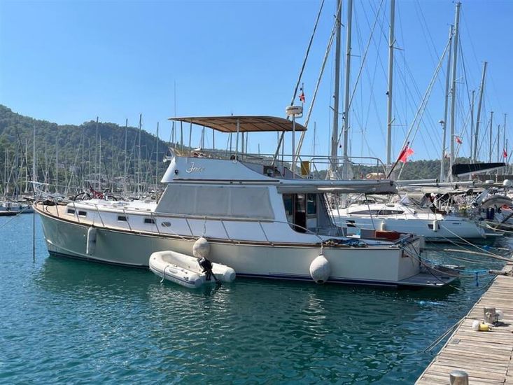 SpecificationFlybridge Lobster motor yacht to the designs of Jarvis Newman.Built by Mehmet Karabeyoglu in 1986 3 cabin layout , electric WC to owner and guest cabin , manual WC to forward cabin Full electronics by Raymarine including Autopilot . Icom VHF Generator - Kohler 7 KWVictron battery chargerShore supply and cablesCompressor - Black and DeckerMastervolt 2,500 W inverter4 x engine start batteries4x domestic batteries , all 250 a/hCruiser air conditioning Eberspacher heatingBosch dishwasher4 x fridge freezer unitsFrankie stove Ultra 25 Kg anchor with 100mtr @ 16mm chainLofrans windlassEastmarine RIB with 3.5 Hp Mercury outboard