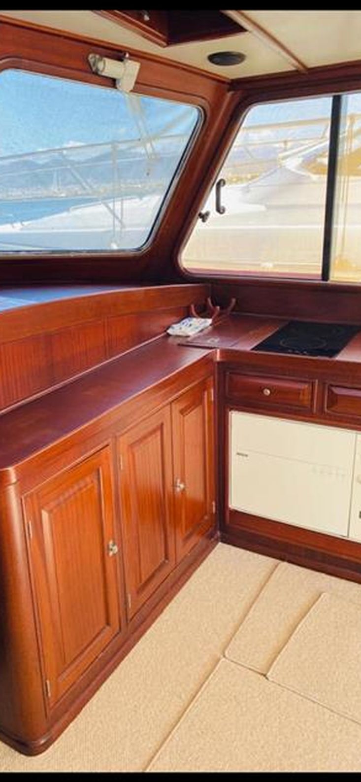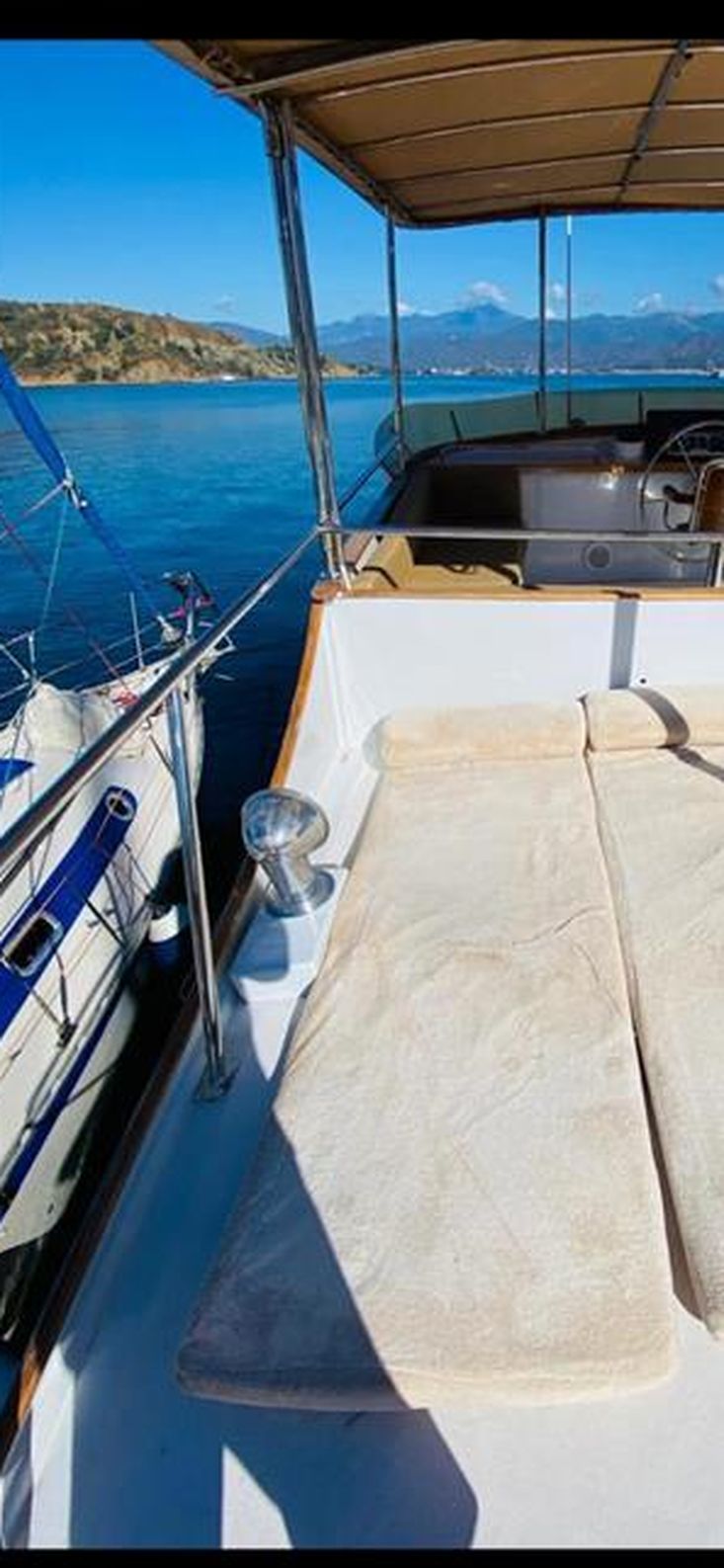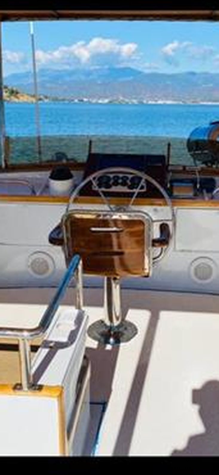 SpecificationFlybridge Lobster motor yacht to the designs of Jarvis Newman.Built by Mehmet Karabeyoglu in 1986 3 cabin layout , electric WC to owner and guest cabin , manual WC to forward cabin Full electronics by Raymarine including Autopilot . Icom VHF Generator - Kohler 7 KWVictron battery chargerShore supply and cablesCompressor - Black and DeckerMastervolt 2,500 W inverter4 x engine start batteries4x domestic batteries , all 250 a/hCruiser air conditioning Eberspacher heatingBosch dishwasher4 x fridge freezer unitsFrankie stove Ultra 25 Kg anchor with 100mtr @ 16mm chainLofrans windlassEastmarine RIB with 3.5 Hp Mercury outboard